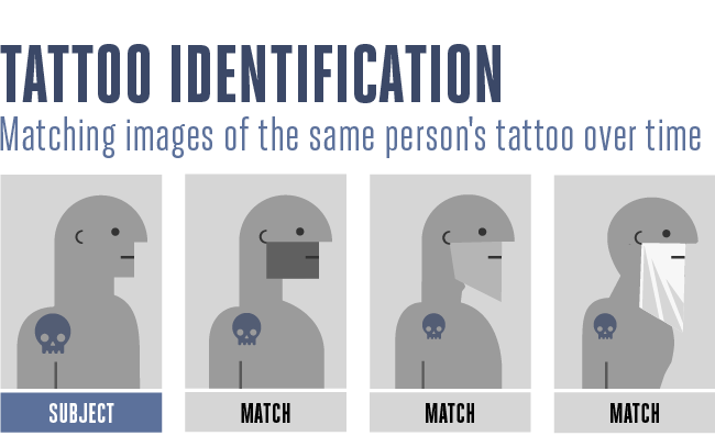 Hasta hace poco, sin embargo, la comparación y el análisis de tatuajes implicaba hojear las páginas de las carpetas de fotos; cualquier comparación asistida por sistemas informáticos se limitaba a búsquedas de metadatos de palabras clave.