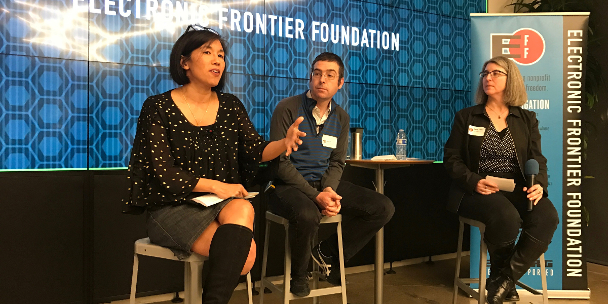 Watch below for the full discussion touching upon diverse digital civil liberties issues including net neutrality, device searches at the border, predictive policing algorithms, and more: