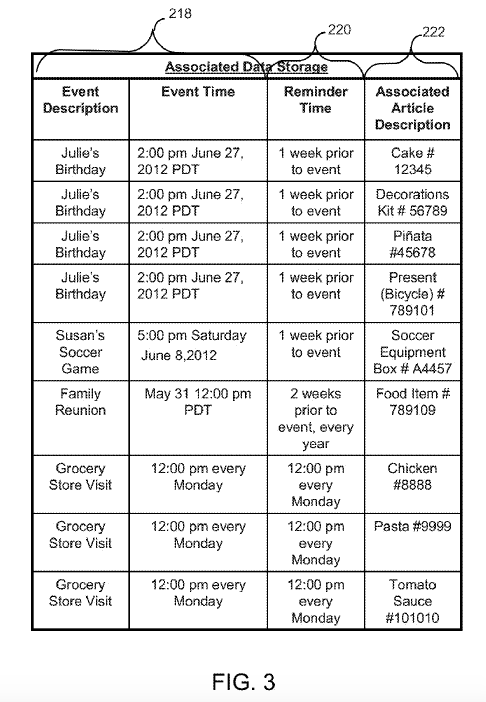 Although this claim uses some obscure language (like “non-transitory computer-readable storage medium” and “article data”), it describes a quite mundane process. The “article data” is simply additional information associated with an event. For example, ‘buy a cake’ might be included with a birthday reminder. The patent also requires that this extra information be input via a “scanning operation” (e.g. scanning a QR code).