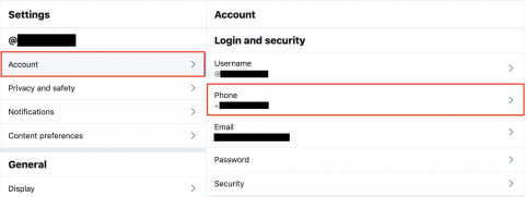 3. To check whether or not you have a phone number associated with your account, go to the Account section of your settings and select Phone—or just go to https://twitter.com/settings/phone.