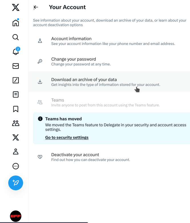 (Si piensas abandonar X, asegúrate de seguir a EFF en Mastodon, Bluesky u otra plataforma).
