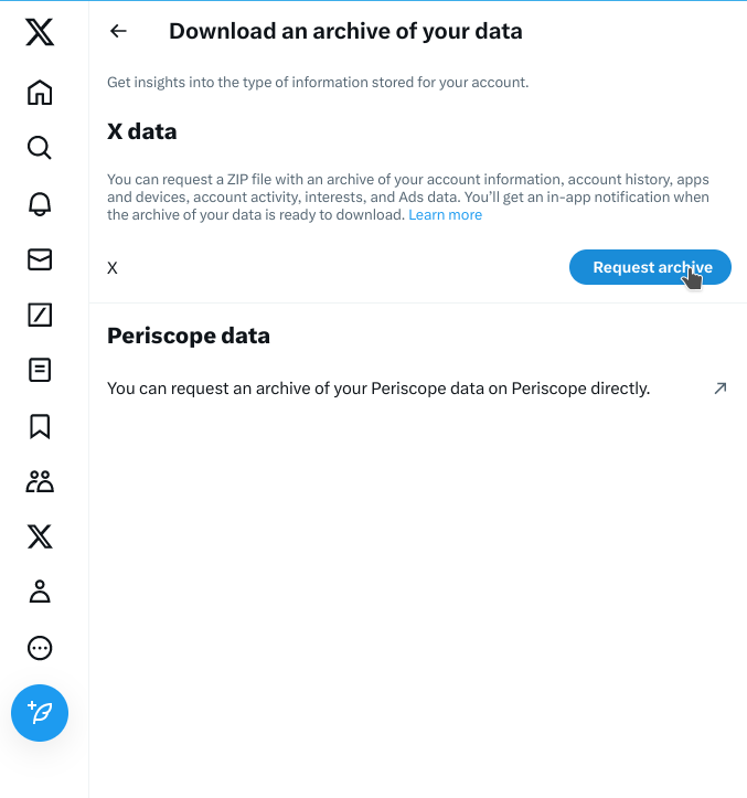 A pesar de las muchas nuevas restricciones de acceso a Twitter, el sitio sigue permitiendo a los usuarios hacer copias de seguridad de todo su perfil con sólo unos clics.