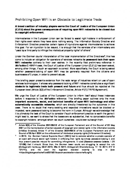 Imagine being able to walk around any street in any city and never worrying about checking an email, downloading a map, making a video call, or streaming a song. EFF believes that open wireless networks greatly contribute to the public good.