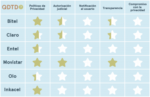 There is still much work to be done. No company earned a star for a public commitment to speak up for their users’ privacy, either in the courts or in legislative and regulatory bodies. Similarly, none of the six companies commit to notify their customers of a government request at the earliest moment allowed by the law. Peru’s new Criminal Procedure Code states that once a judicial measure has been executed and immediate investigations have been carried out, the user affected must be informed of it whenever the investigation object permits the notification, and as long as it does not endanger life or the physical safety of third parties. In turn, no restriction for notice is provided by the controversial Legislative Decree 1182, which regulates the direct access by police authorities to location data.