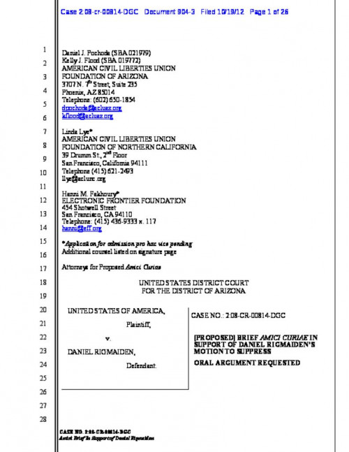 An Arizona federal court this afternoon will be the battleground over the government's use of a "Stingray" surveillance device in a closely watched criminal case, United States v. Rigmaiden. And in an important development, new documents revealed after an ACLU of Northern California Freedom...
